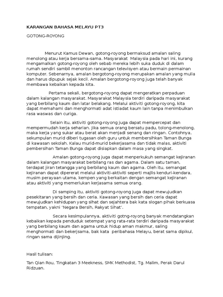 . Berikutnya contoh Karangan SPM PT3 UPSR sekolah rendah boleh dirujuk semasa menjawap soalan karangan. Contoh karangan surat kiriman. Contoh Karangan Bahasa Malaysia PT3 Kandungan Kepentingan Taman rekreasi terhadap Masyarakat Tempat permainan kanak-kanak Mengeratkan hubungan antara jiran tetangga.